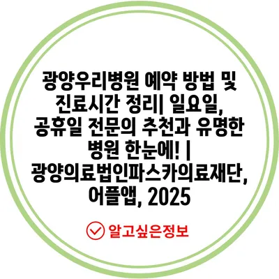 광양우리병원 예약 방법 및 진료시간 정리| 일요일, 공휴일 전문의 추천과 유명한 병원 한눈에! | 광양의료법인파스카의료재단, 어플앱, 2025