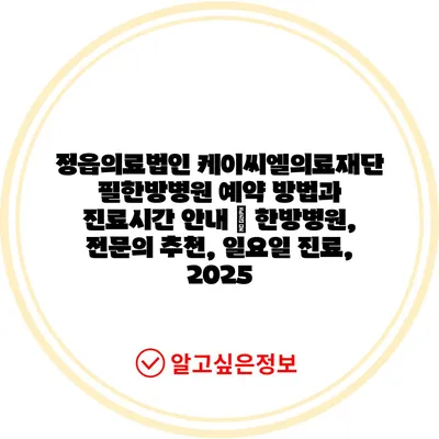정읍의료법인 케이씨엘의료재단 필한방병원 예약 방법과 진료시간 공지 | 한방병원, 전연락 추천, 일요일 진료, 2025 에 대해 자주 묻는 질문 TOP 5