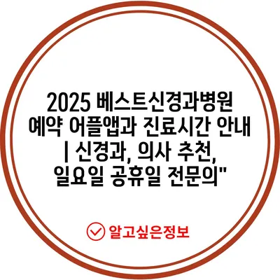 2025 베스트신경과병원 예약 어플앱과 진료시간 공지 | 신경과, 의사 추천, 일요일 공휴일 전연락에 대해 자주 묻는 질문 TOP 5
