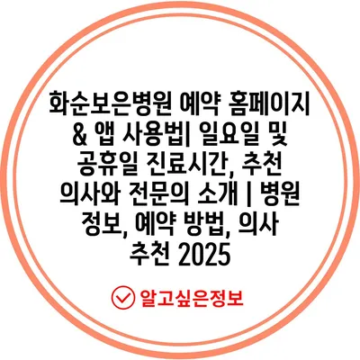 화순보은병원 예약 홈페이지 & 앱 사용법| 일요일 및 공휴일 진료시간, 추천 의사와 전연락 소개 | 병원 정보, 예약 방법, 의사 추천 2025
