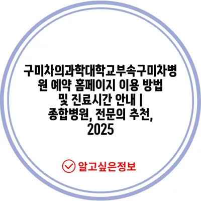 ✅ 구미차병원 예약 방법과 진료시간을 쉽게 확인하세요.