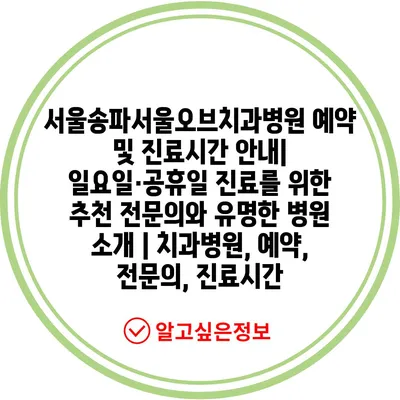서울송파서울오브치과병원 예약 및 진료시간 안내| 일요일·공휴일 진료를 위한 추천 전문의와 유명한 병원 소개 | 치과병원, 예약, 전문의, 진료시간