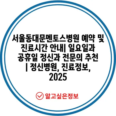 서울동대문멘토스병원 예약 및 진료시간 공지| 일요일과 공휴일 정신과 전연락 추천 | 정신병원, 진료정보, 2025 에 대해 자주 묻는 질문 TOP 5
