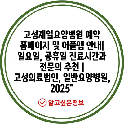 고성제일요양병원 예약 홈페이지 및 어플앱 안내| 일요일, 공휴일 진료시간과 전문의 추천 | 고성의료법인, 일반요양병원, 2025″