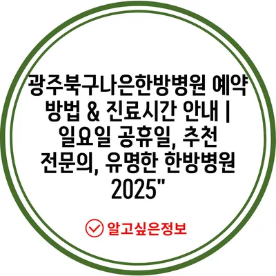 광주북구나은한방병원 예약 방법 & 진료시간 공지 | 일요일 공휴일, 추천 전연락, 유명한 한방병원 2025″ 에 대해 자주 묻는 질문 TOP 5