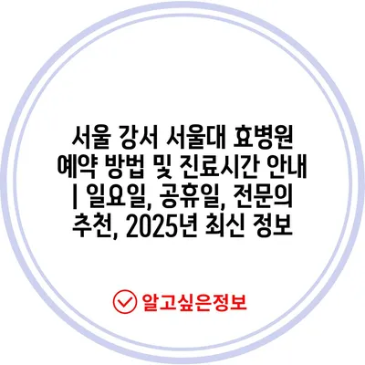 서울 강서 서울대 효병원 예약 방법 및 진료시간 공지 | 일요일, 공휴일, 전연락 추천, 2025년 최신 정보 에 대해 자주 묻는 질문 TOP 5