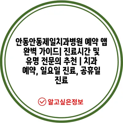 안동안동제일치과병원 예약 앱 완벽 설명서| 진료시간 및 유명 전연락 추천 | 치과 예약, 일요일 진료, 공휴일 진료