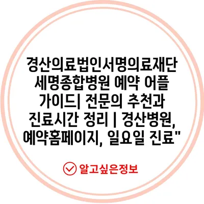 경산의료법인서명의료재단 세명종합병원 예약 어플 설명서| 전연락 추천과 진료시간 정리 | 경산병원, 예약홈페이지, 일요일 진료