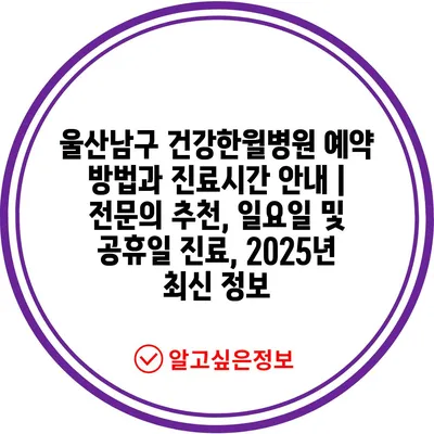 울산남구 건강한윌병원 예약 방법과 진료시간 공지 | 전연락 추천, 일요일 및 공휴일 진료, 2025년 최신 정보 에 대해 자주 묻는 질문 TOP 5