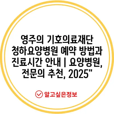 영주의 기호의료재단 청하요양병원 예약 방법과 진료시간 공지 | 요양병원, 전연락 추천, 2025″ 에 대해 자주 묻는 질문 TOP 5