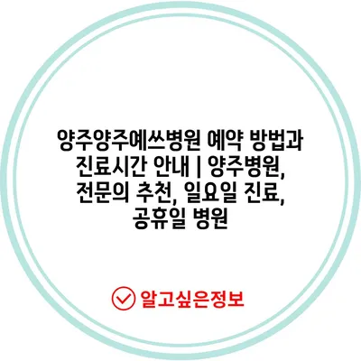 ✅ 양주양주예쓰병원 예약 방법과 진료시간을 자세히 알아보세요.