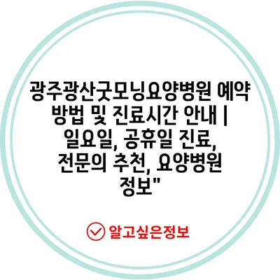 ✅ 광주광산굿모닝요양병원의 예약 방법과 진료시간을 한눈에 알아보세요!