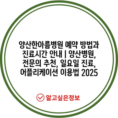 양산한아름병원 예약 방법과 진료시간 공지 | 양산병원, 전연락 추천, 일요일 진료, 어플리케이션 이용법 2025 에 대해 자주 묻는 질문 TOP 5