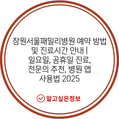 ✅ 창원서울패밀리병원의 예약 방법을 자세히 알아보세요.