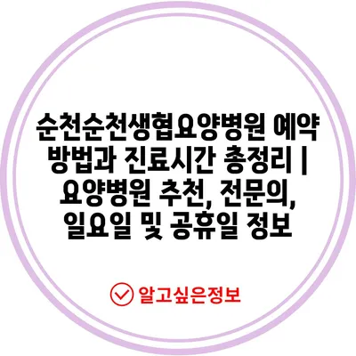 순천순천생협요양병원 예약 방법과 진료시간 총정리 | 요양병원 추천, 전연락, 일요일 및 공휴일 정보