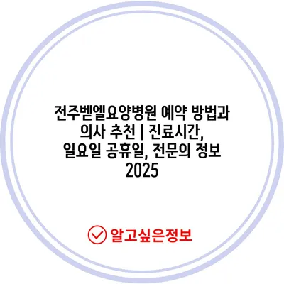 전주벧엘요양병원 예약 방법과 의사 추천 | 진료시간, 일요일 공휴일, 전연락 정보 2025에 대해 알아보겠습니다.