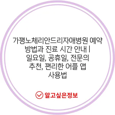 ✅ 가평노체리안드리자애병원 예약 방법을 지금 확인해 보세요!