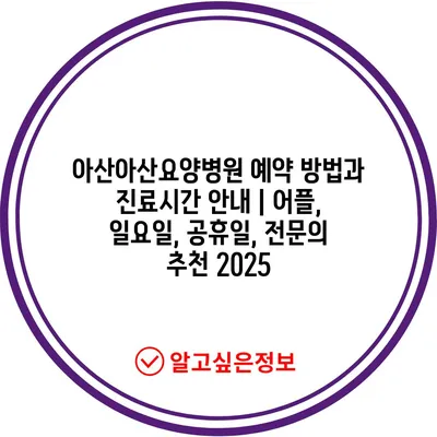 ✅ 아산아산요양병원 예약 방법과 진료시간을 지금 바로 알아보세요!