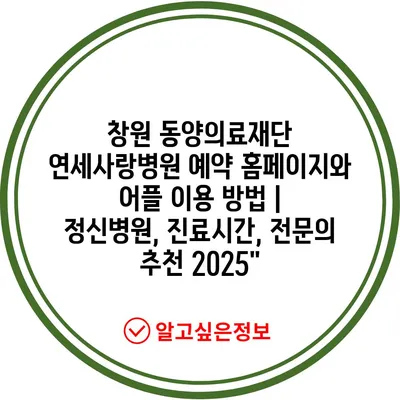 창원 동양의료재단 연세사랑병원 예약 홈페이지와 어플 이용 방법 | 정신병원, 진료시간, 전연락 추천 2025에 대해 알아보겠습니다.