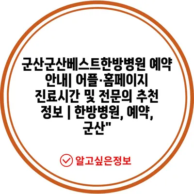 ✅ 군산베스트한방병원 예약 방법과 진료시간을 자세히 알아보세요.