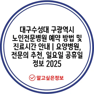 대구수성대 구광역시 노인전문병원 예약 방법 및 진료시간 공지 | 요양병원, 전연락 추천, 일요일 공휴일 정보 2025 에 대해 자주 묻는 질문 TOP 5