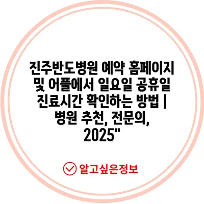 진주반도병원 예약 홈페이지 및 어플에서 일요일 공휴일 진료시간 확인하는 방법 | 병원 추천, 전연락, 2025″ 에 대해 자주 묻는 질문 TOP 5