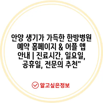 안양 생기가 가득한 한방병원 예약 홈페이지 & 어플 앱 공지 | 진료시간, 일요일, 공휴일, 전연락 추천에 대해 자주 묻는 질문 TOP 5