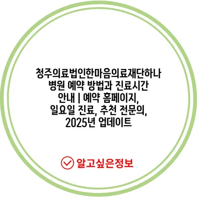 청주의료법인한마음의료재단하나병원 예약 방법과 진료시간 공지 | 예약 홈페이지, 일요일 진료, 추천 전연락, 2025년 업데이트 에 대해 자주 묻는 질문 TOP 5