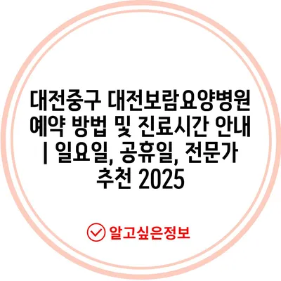 대전중구 대전보람요양병원 예약 방법 및 진료시간 공지 | 일요일, 공휴일, 전문가 추천 2025 에 대해 자주 묻는 질문 TOP 5