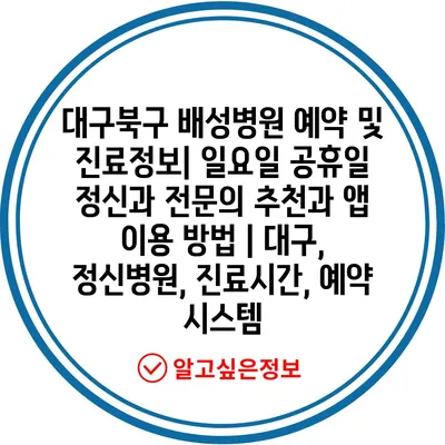대구북구 배성병원 예약 및 진료정보| 일요일 공휴일 정신과 전문의 추천과 앱 이용 방법 | 대구, 정신병원, 진료시간, 예약 시스템