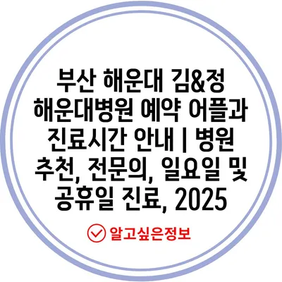 부산 해운대 김&정 해운대병원 예약 어플과 진료시간 안내 | 병원 추천, 전문의, 일요일 및 공휴일 진료, 2025