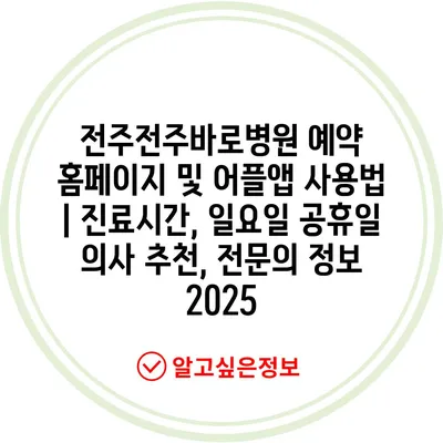 전주전주바로병원 예약 홈페이지 및 어플앱 사용법 | 진료시간, 일요일 공휴일 의사 추천, 전문의 정보 2025