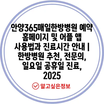 안양365매일한방병원 예약 홈페이지 및 어플 앱 사용법과 진료시간 안내 | 한방병원 추천, 전문의, 일요일 공휴일 진료, 2025