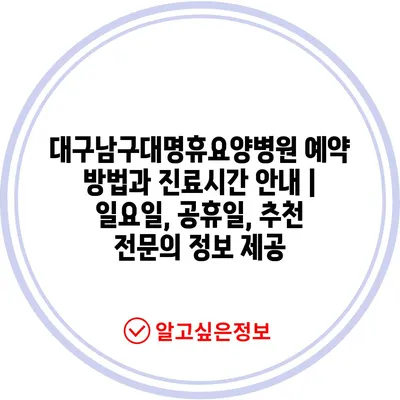 대구남구대명휴요양병원 예약 방법과 진료시간 안내 | 일요일, 공휴일, 추천 전문의 정보 제공