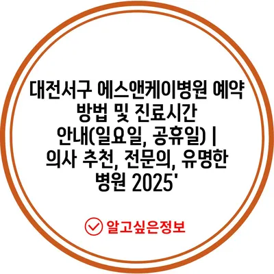 대전서구 에스앤케이병원 예약 방법 및 진료시간 안내(일요일, 공휴일) | 의사 추천, 전문의, 유명한 병원 2025′