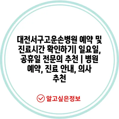 대전서구고운손병원 예약 및 진료시간 확인하기| 일요일, 공휴일 전문의 추천 | 병원 예약, 진료 안내, 의사 추천