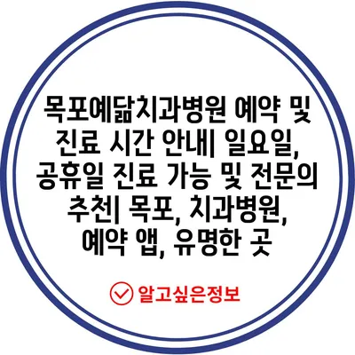 목포예닮치과병원 예약 및 진료 시간 안내| 일요일, 공휴일 진료 가능 및 전문의 추천| 목포, 치과병원, 예약 앱, 유명한 곳