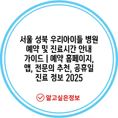 서울 성북 우리아이들 병원 예약 및 진료시간 안내 가이드 | 예약 홈페이지, 앱, 전문의 추천, 공휴일 진료 정보 2025