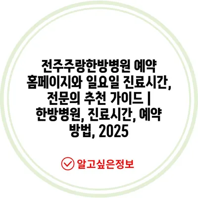 전주주랑한방병원 예약 홈페이지와 일요일 진료시간, 전문의 추천 가이드 | 한방병원, 진료시간, 예약 방법, 2025