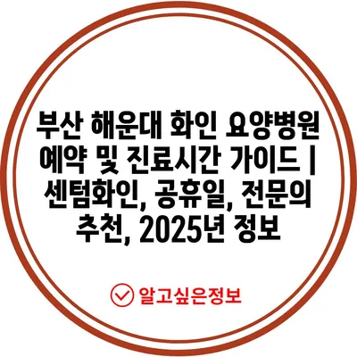 부산 해운대 화인 요양병원 예약 및 진료시간 가이드 | 센텀화인, 공휴일, 전문의 추천, 2025년 정보