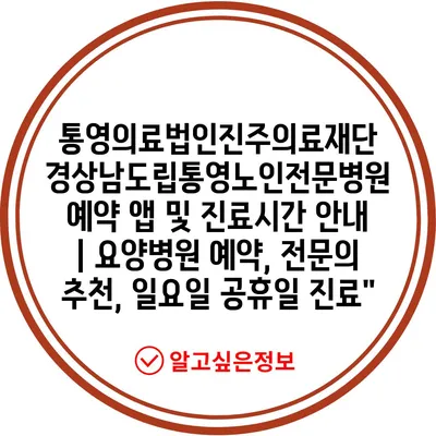 통영의료법인진주의료재단 경상남도립통영노인전문병원 예약 앱 및 진료시간 안내 | 요양병원 예약, 전문의 추천, 일요일 공휴일 진료”