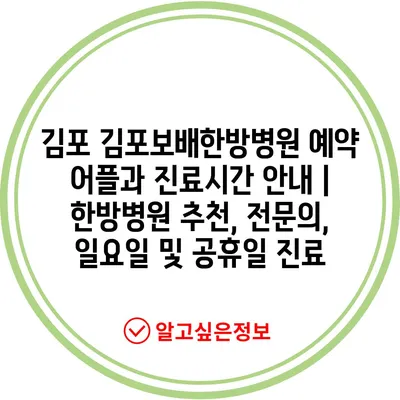 김포 김포보배한방병원 예약 어플과 진료시간 안내 | 한방병원 추천, 전문의, 일요일 및 공휴일 진료