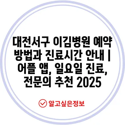 대전서구 이김병원 예약 방법과 진료시간 안내 | 어플 앱, 일요일 진료, 전문의 추천 2025
