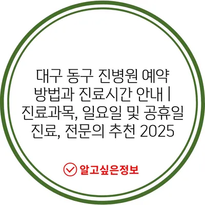 대구 동구 진병원 예약 방법과 진료시간 안내 | 진료과목, 일요일 및 공휴일 진료, 전문의 추천 2025