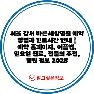 서울 강서 바른세상병원 예약 방법과 진료시간 안내 | 예약 홈페이지, 어플앱, 일요일 진료, 전문의 추천, 병원 정보 2025