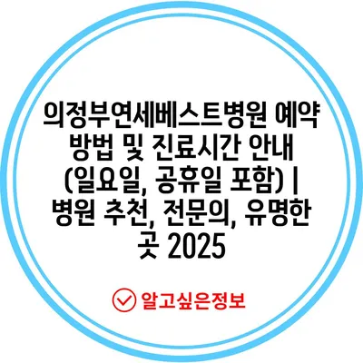 의정부연세베스트병원 예약 방법 및 진료시간 안내 (일요일, 공휴일 포함) | 병원 추천, 전문의, 유명한 곳 2025