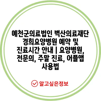 예천군의료법인 벽산의료재단 경희요양병원 예약 및 진료시간 안내 | 요양병원, 전문의, 주말 진료, 어플앱 사용법