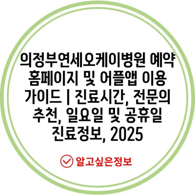 의정부연세오케이병원 예약 홈페이지 및 어플앱 이용 가이드 | 진료시간, 전문의 추천, 일요일 및 공휴일 진료정보, 2025