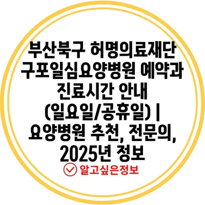 부산북구 허명의료재단 구포일심요양병원 예약과 진료시간 안내 (일요일/공휴일) | 요양병원 추천, 전문의, 2025년 정보