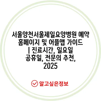 서울양천서울제일요양병원 예약 홈페이지 및 어플앱 가이드 | 진료시간, 일요일 공휴일, 전문의 추천, 2025